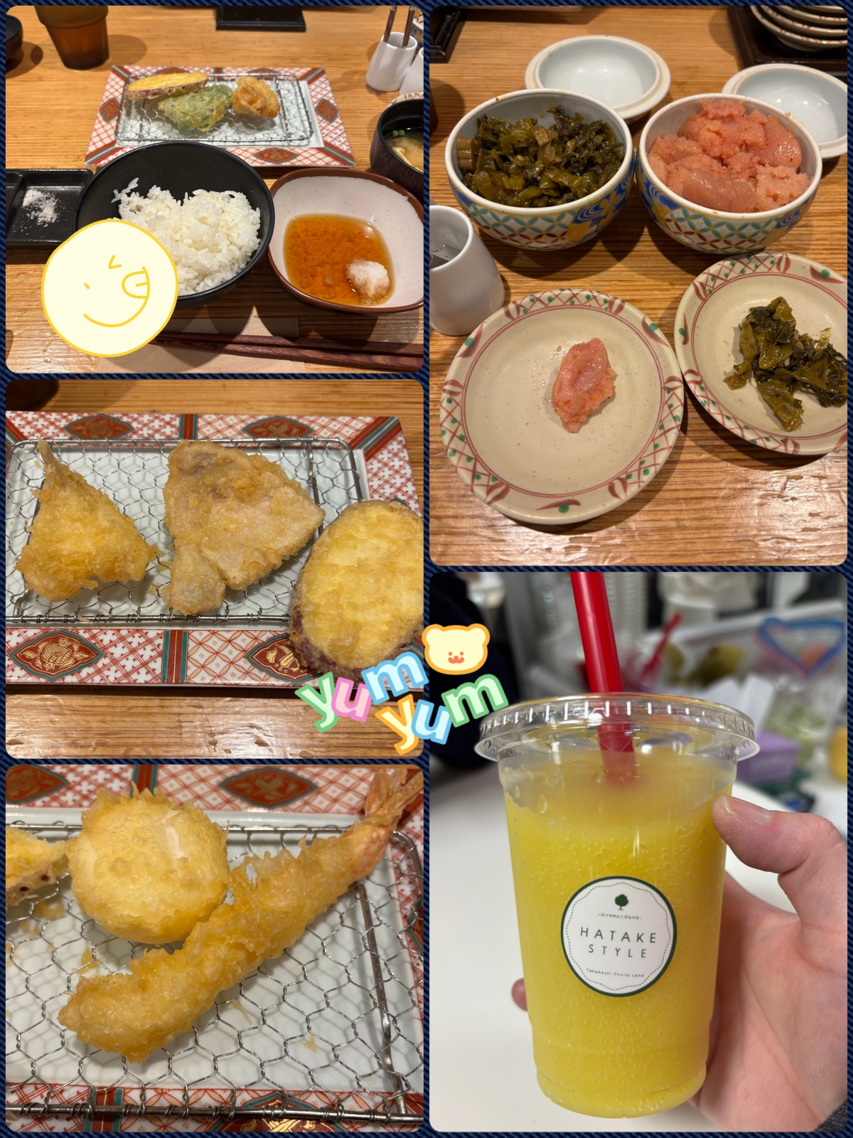 やまや 大好きなやまやの明太子と高菜漬けが食べ放題の天ぷら屋さんへ。こんな揚げたての天ぷら久しぶりだったな。半熟卵天 おいしかった!そしてお目当ての明太子も高菜も大満足!!!また行きたいわ。食後は東武で全国物産展やってたから 山形だったかな?ラフランススムージー、これが大当たり🎯超〜美味しかった❤️