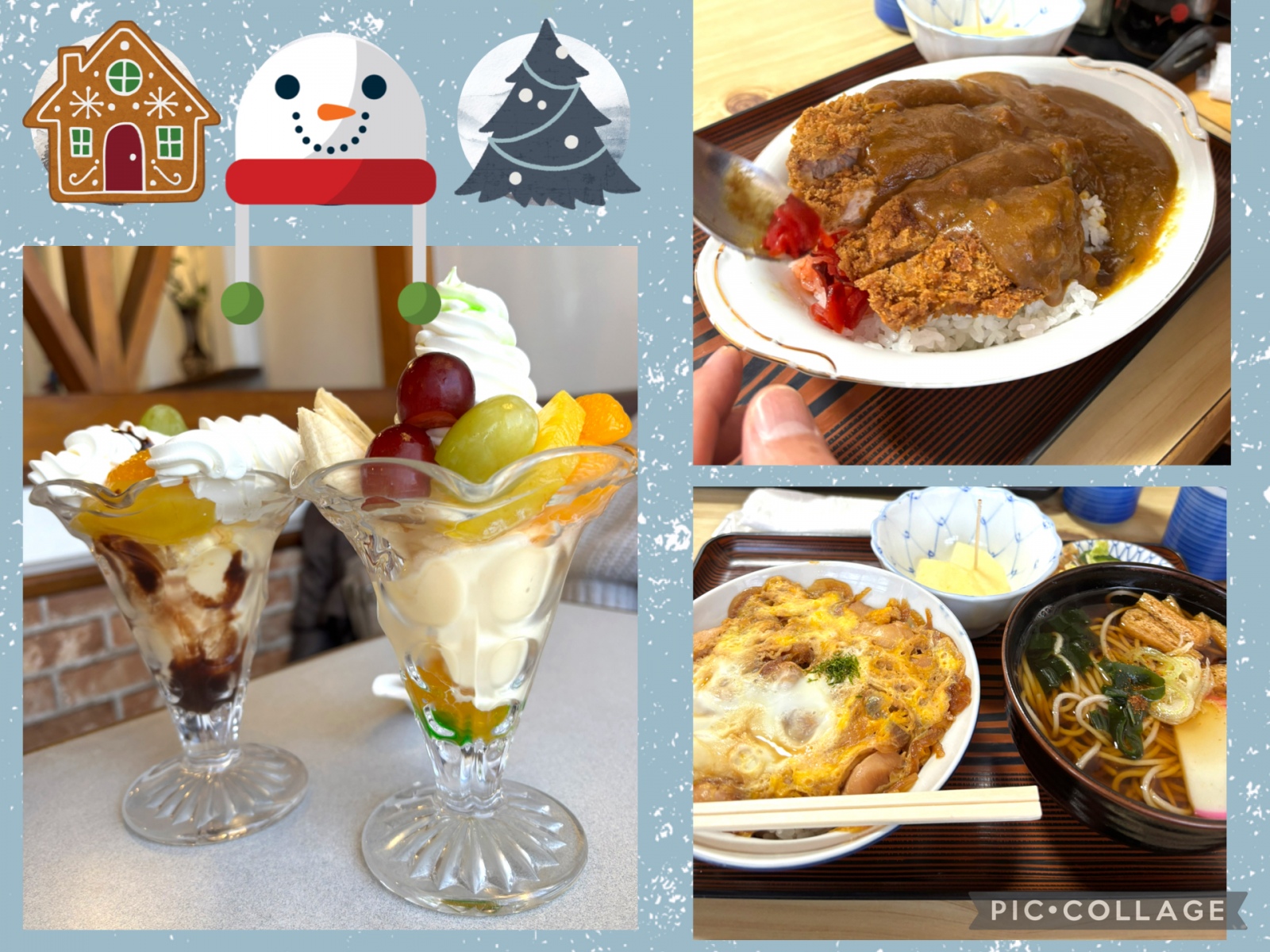 レトロ 予定していたお店が臨時休業で 慌ててググって数少ない選択肢から 思いっきりレトロ?エモい?感じのお店行ってみよー!と義兄たちと話して行ってみたお店。カツカレーのお皿とか盛り付けが懐かしいかんじ。ここでオムライス頼めば良かったなぁと親子丼にして後悔。きっとエモかったと思う。全てのメニューにリンゴが付いてくるのも何か良い!!!食後の喫茶店もすごく良い雰囲気で昔ながらのパフェって感じで美味しかった♪けっこうご年配の常連さんが来てたよ。