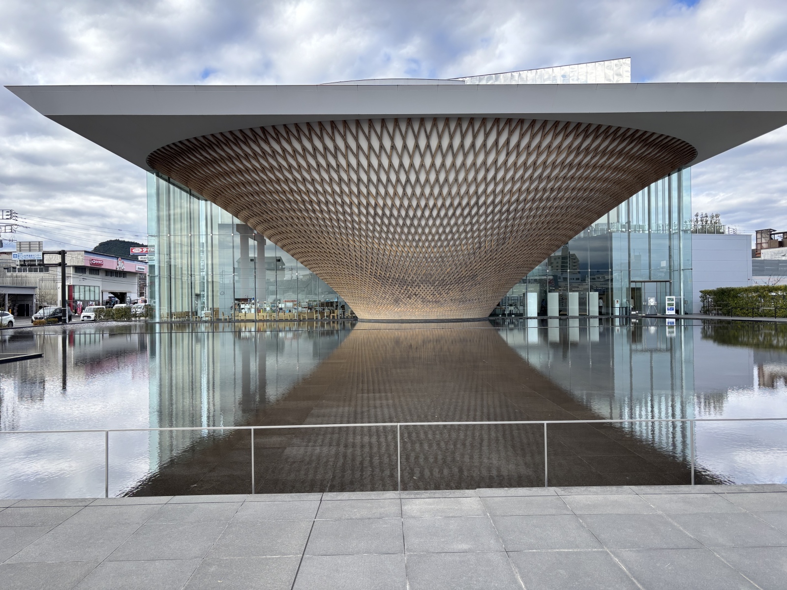 富士ヒノキ ちょうど人もいなく、風もなく、凪のいい状態の時に写真撮れたよ!この設計すごいなぁと思ったし、富士ヒノキを曲線にして釘を使わずに建てたのがすごいっ!!!なかなか出来る宮大工さんがいなくて 山形の宮大工さんに頼んだんですよと説明いただきました。