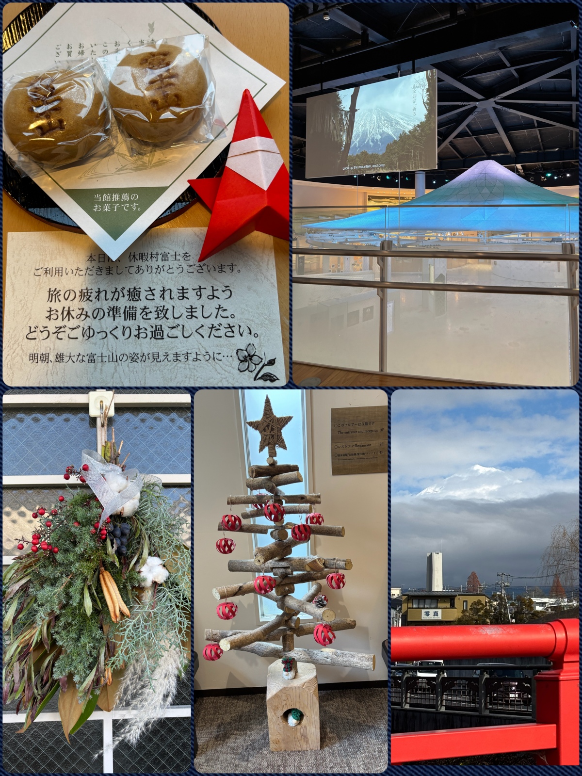 完*山梨静岡旅行記 今年はクリスマスリースを作りに行けなかったから、道の駅のお花屋さんでボリュームすごいのに1800円で見つけて嬉しかった❤️お宿の折り紙サンタさんのお出迎えも嬉しかったな。もう両親はほとんどベンチ休憩だったけど、何とか行けて良かった。毎回 もう最後だよ、迷惑かけるね!って言ってる母😂さてさて今後どうなるかな?なるべく行ける時は一緒に行こう!と思っている。そして私、一回も体調悪くならずバンザーイ🙌