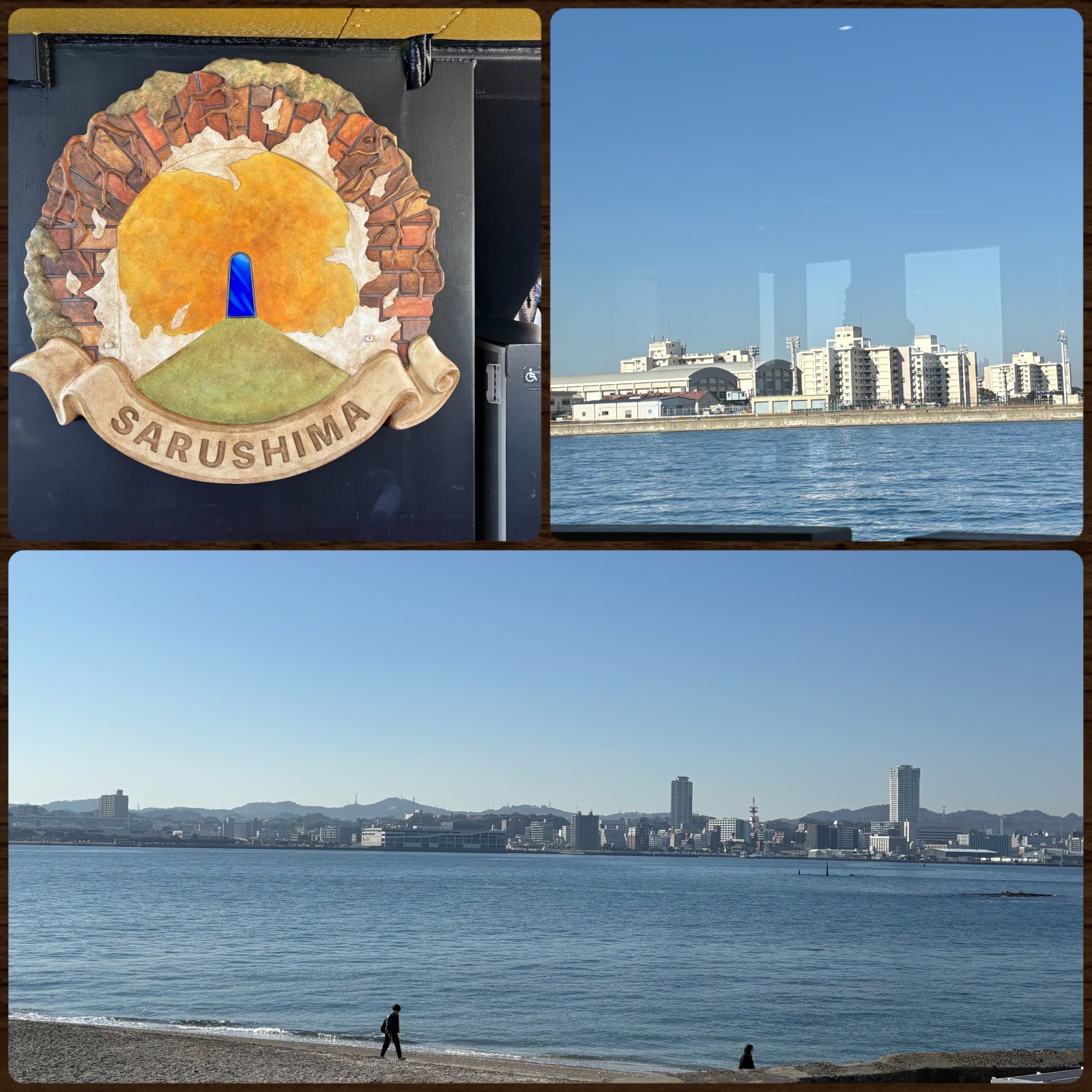 猿島から見た横須賀の街と船から見た米軍基地。