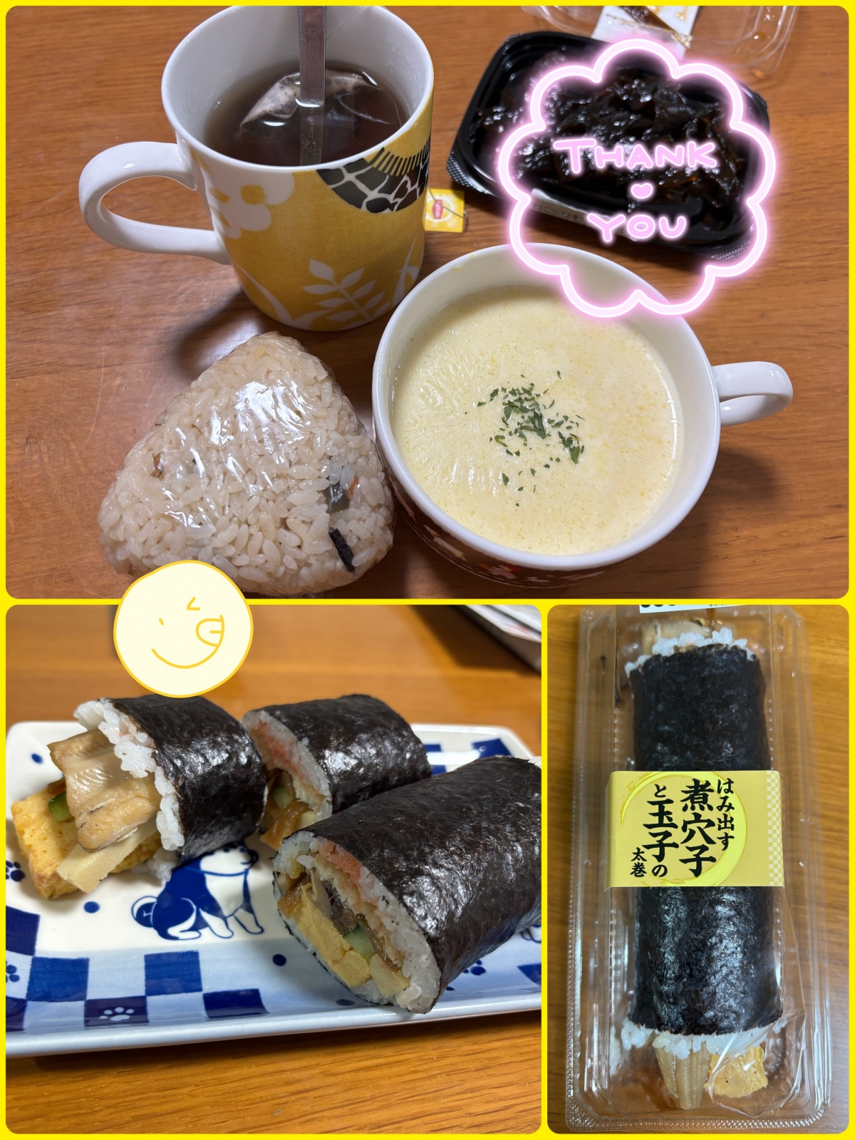 涙出るほど嬉しかった 朝起きたら玄関におにぎりとコーンスープがっ!!!🥹😭あぁKさんっ❤️本当にいつもいつもありがとうございます。おいしくて嬉しくて本当に涙出ました。そして節分の日にはMちゃんママが恵方巻き届けてくれて😭😭これまた感涙。このお二方と出会えたのも春を飼ったからだなぁと。こんな温かい方々のいるここで私、老いていけそうだな、なんて思ったのでした。私も人が弱っている時 こんな風に助けられる人間になりたいなぁ。