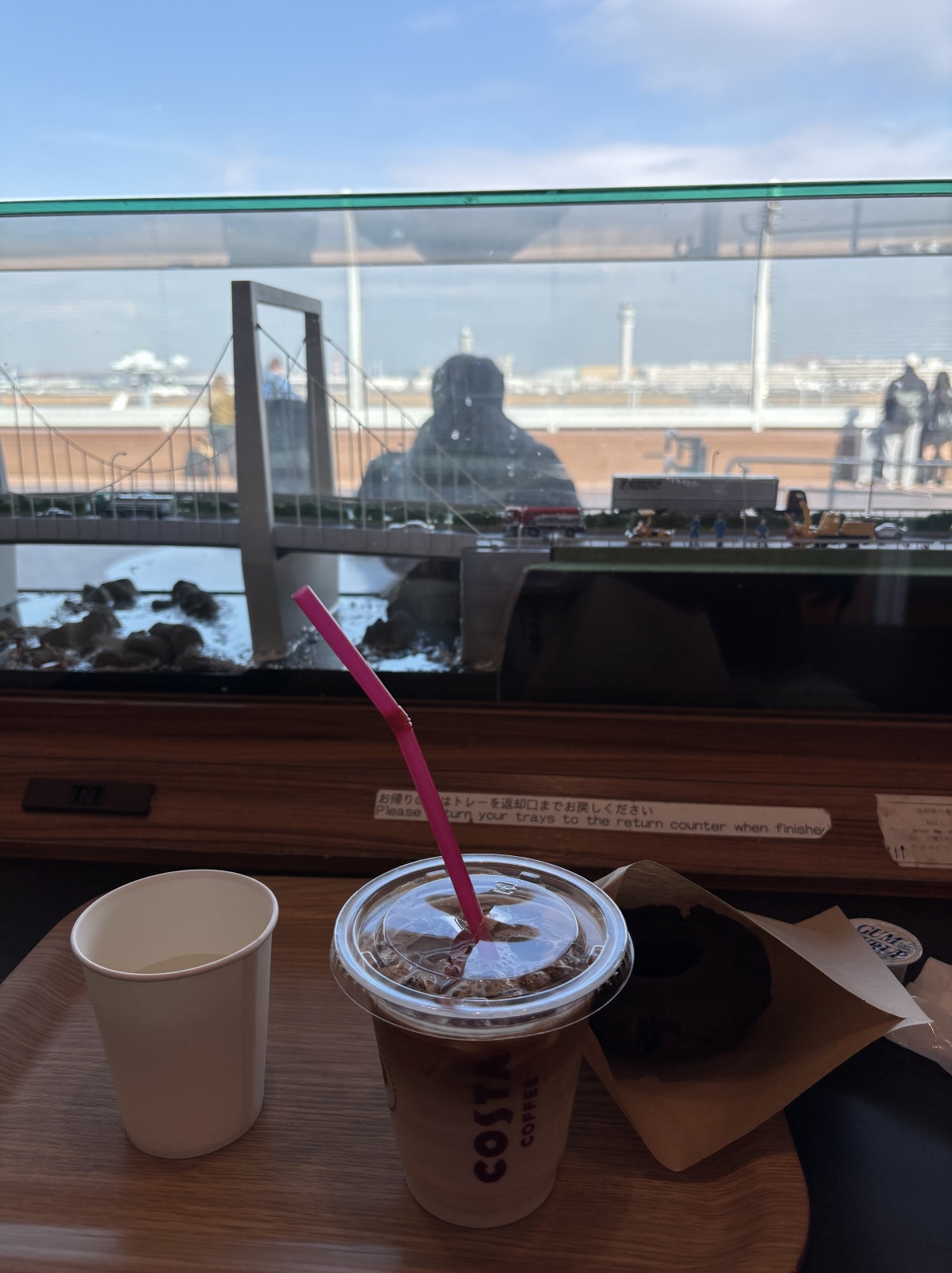 途中 展望カフェでお茶したけど……今も展望デッキで立ちっぱなしで飛行機見てるFっち。