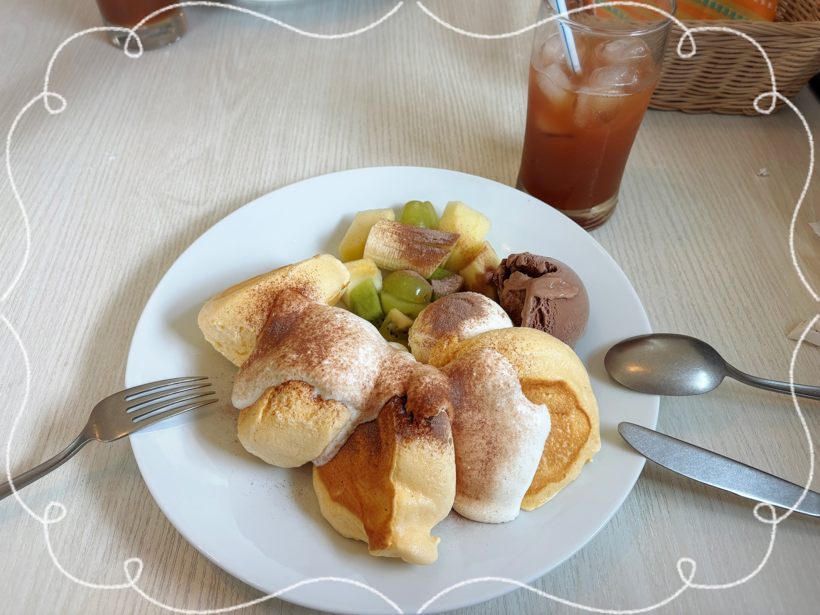 Yちゃんと 今日は小学校時代の唯一の友人Yちゃんと一日デート❤️懐かしい名前も出たり、次は他の子も呼ぼうと盛り上がって楽しかった。私は小学校卒業と同時に引っ越したからもう繋がってる人いなくて。。。パンケーキはプリンみたいに柔らかかった。飲み物かってくらい😁おいしかったけど、私はもう少し生地感あった方が好きかな。。。